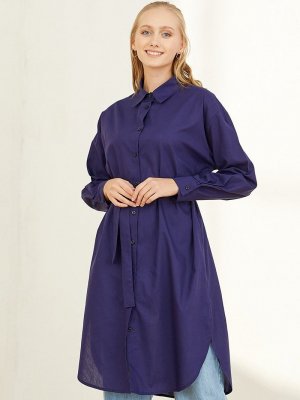 Ceylan Otantik Lacivert Kuşaklı Gömlek Tunik