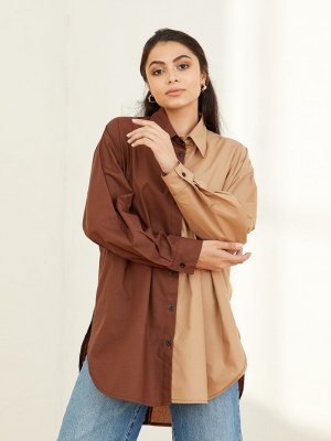 Ceylan Otantik Kahve Karamel İki Renkli Gömlek Tunik