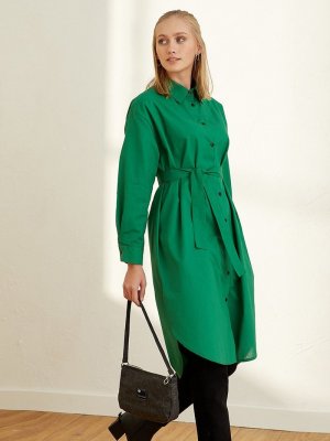Ceylan Otantik Yeşil Kuşaklı Gömlek Tunik