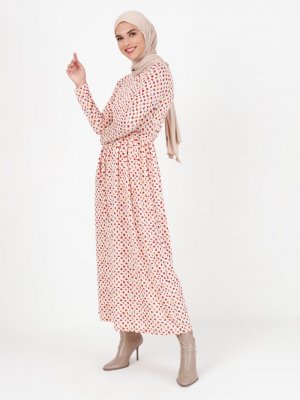 ENSANUR MODA Sarı Kırmızı Desenli Elbise