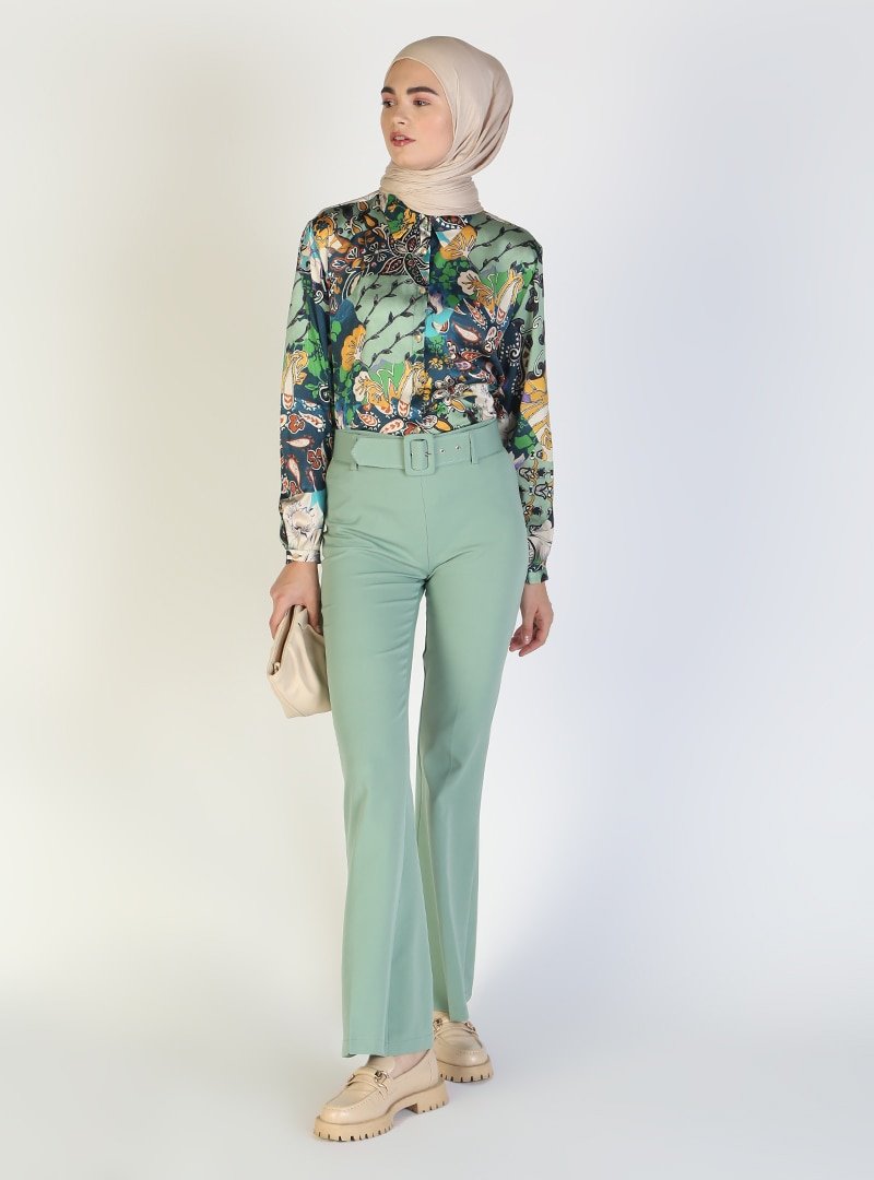 İroni Mint Yeşili İspanyol Paça Pantolon