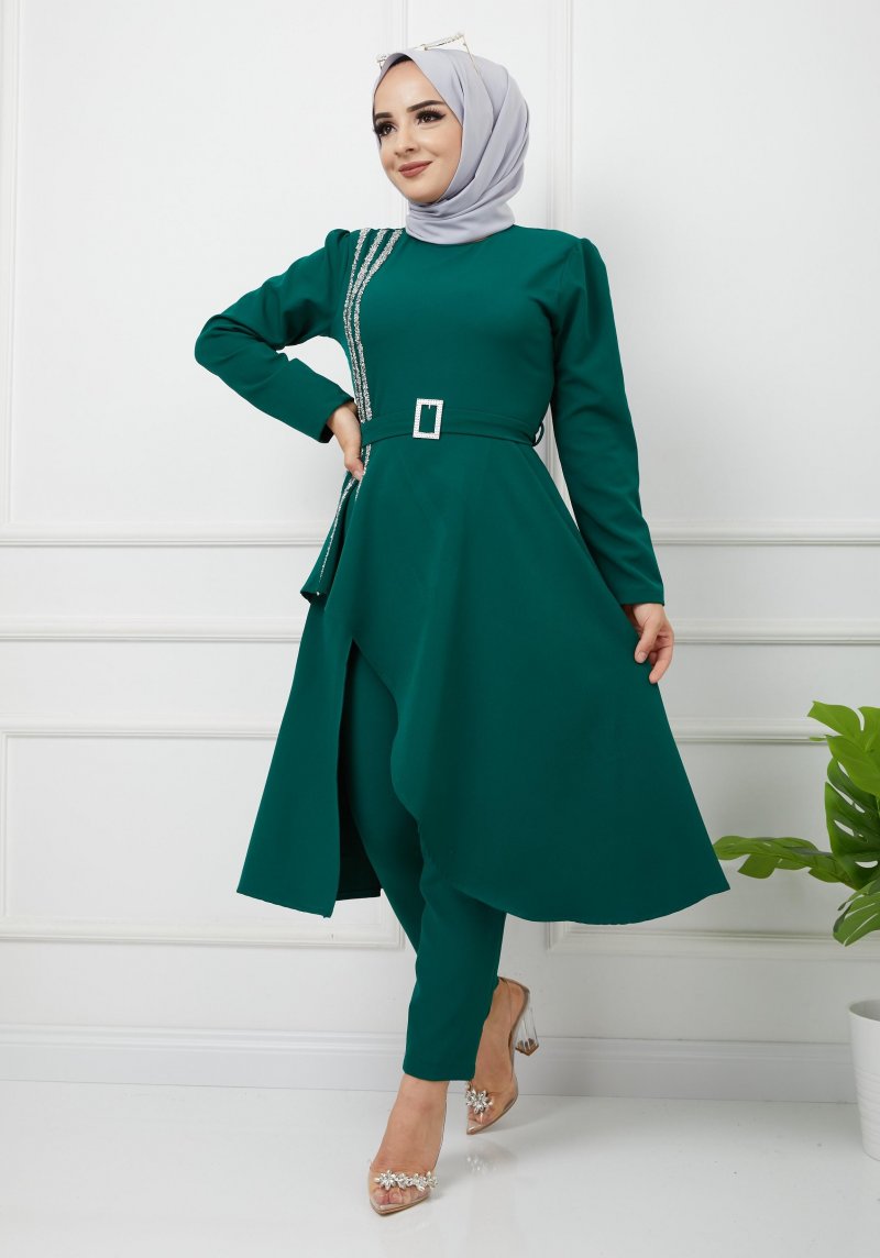 Tuba Mutioğlu Yeşil Hürrem Takım Taş Detaylı