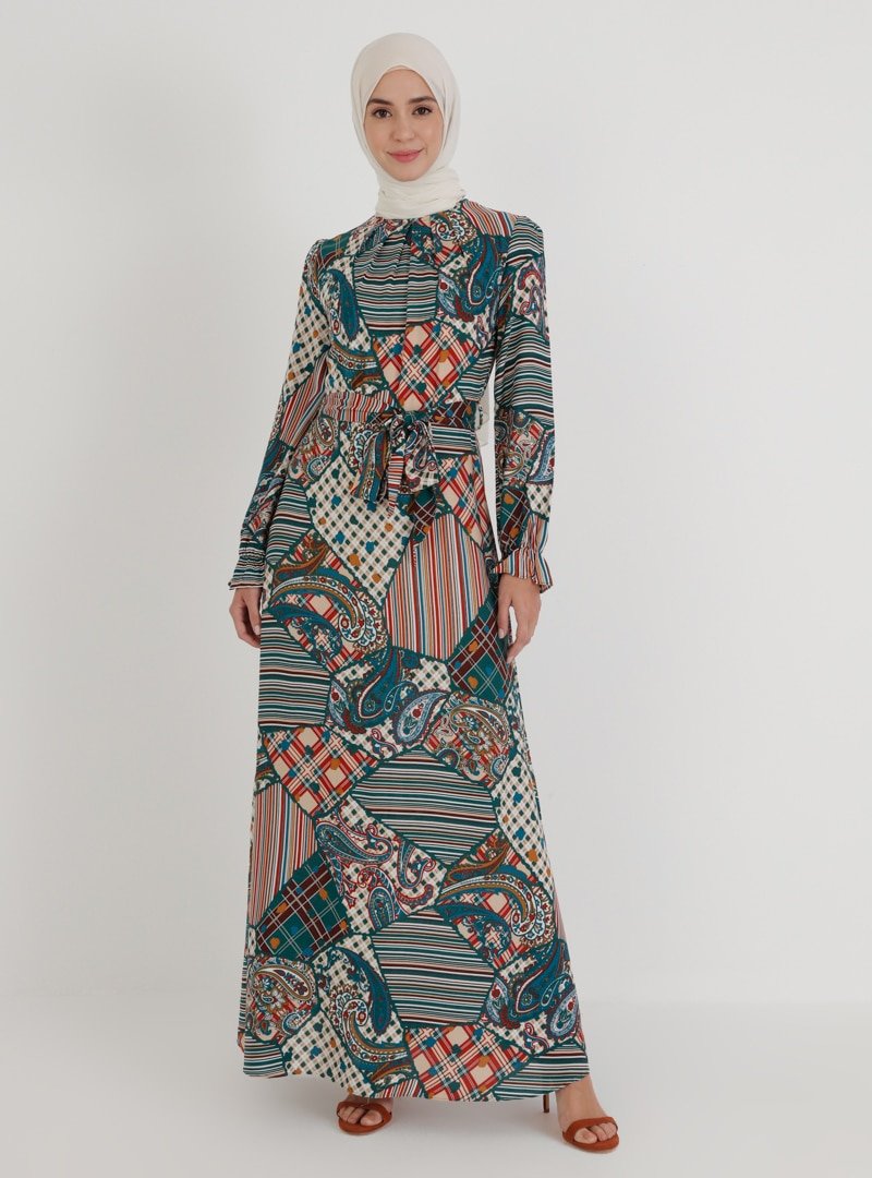 Ziwoman Petrol Desenli Elbise