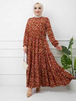 Efkeyem Kırmızı Çiçek Desen Elbise