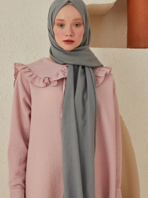 Hooopstore Gümüş Pamuk Vual Şal