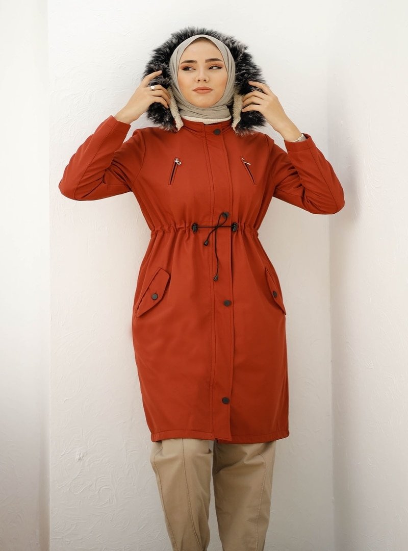 In Style Bordo Fermuar Detay Kürklü Kaban