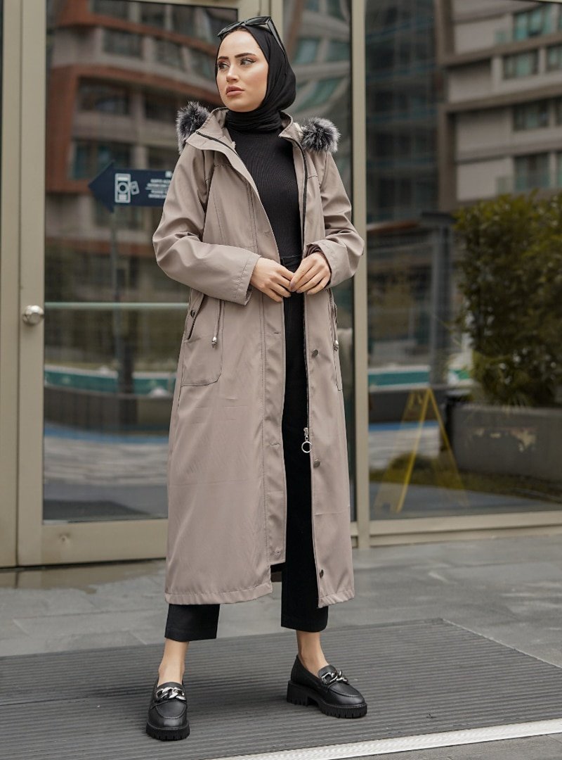 Topless Taş Kapüşonlu İçi Kürklü Kaban