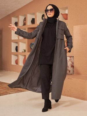 Neways Koyu Gri Trençkot