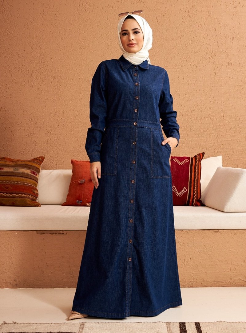 Neways Koyu Mavi Düğmeli Elbise