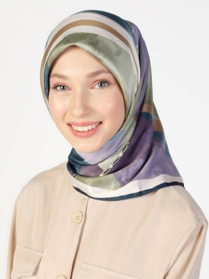 Karaca Eşarp Mor Yeşil Desenli Rayon Eşarp