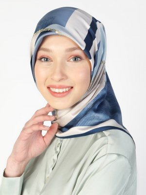 Karaca Eşarp Lacivert Krem Rayon Eşarp