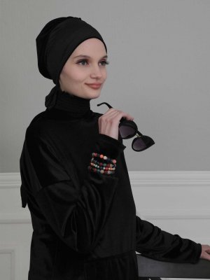 Ayşe Türban Tasarım Siyah Kadife Bone