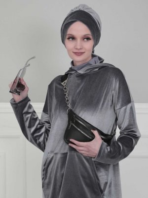 Ayşe Türban Tasarım Gri Kadife Bone