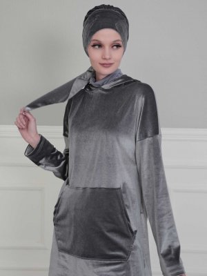 Ayşe Türban Tasarım Gri Kadife Bone
