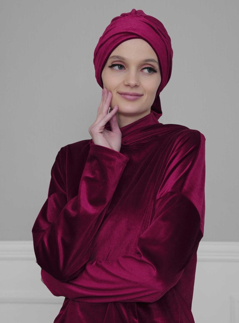 Ayşe Türban Tasarım Vişne Kadife Bone