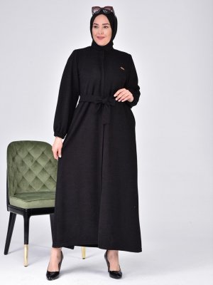 Ferace Siyah Oversize Kuşaklı Pardesü