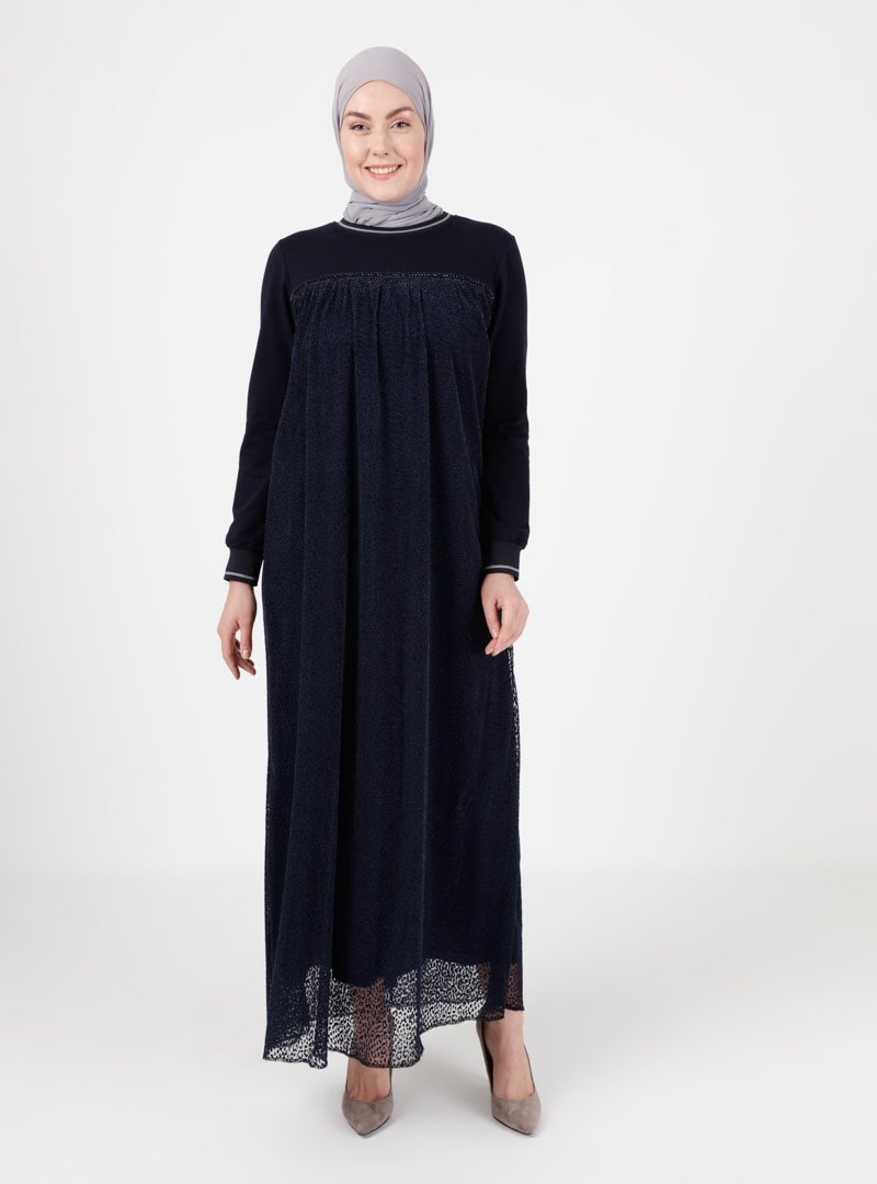 Ginezza Lacivert Tül Detaylı Elbise