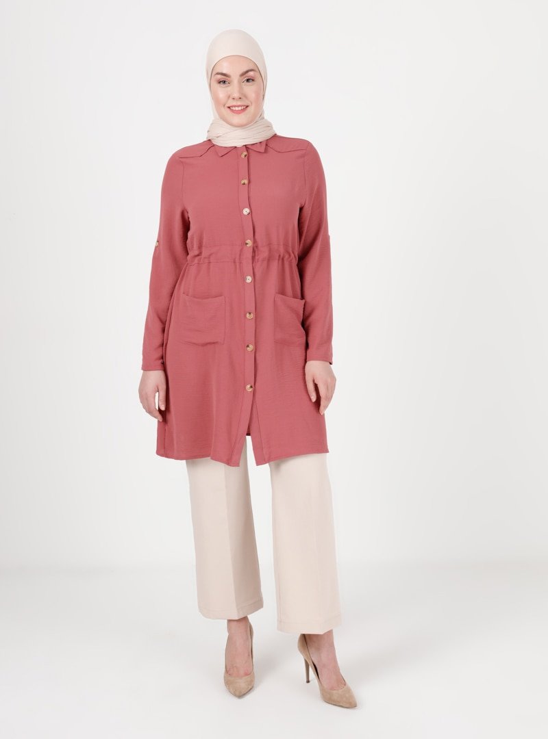 ENSANUR MODA Gül Kurusu Düğmeli Cep Detaylı Tunik