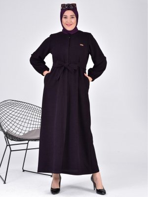 Ferace Mürdüm Oversize Kuşaklı Pardesü