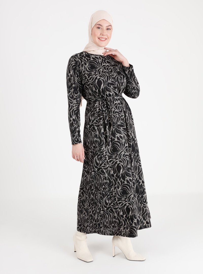 GELİNCE Siyah Desenli Elbise