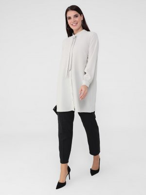 Alia Buz Beyazı Büyük Beden Yakası Bağcıklı Tunik