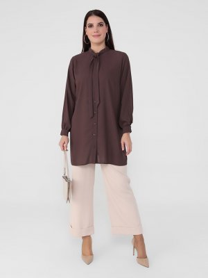 Alia Soğuk Kahve Büyük Beden Yakası Bağcıklı Tunik