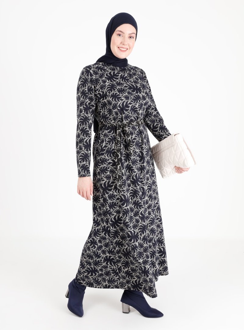 GELİNCE Lacivert Desenli Elbise