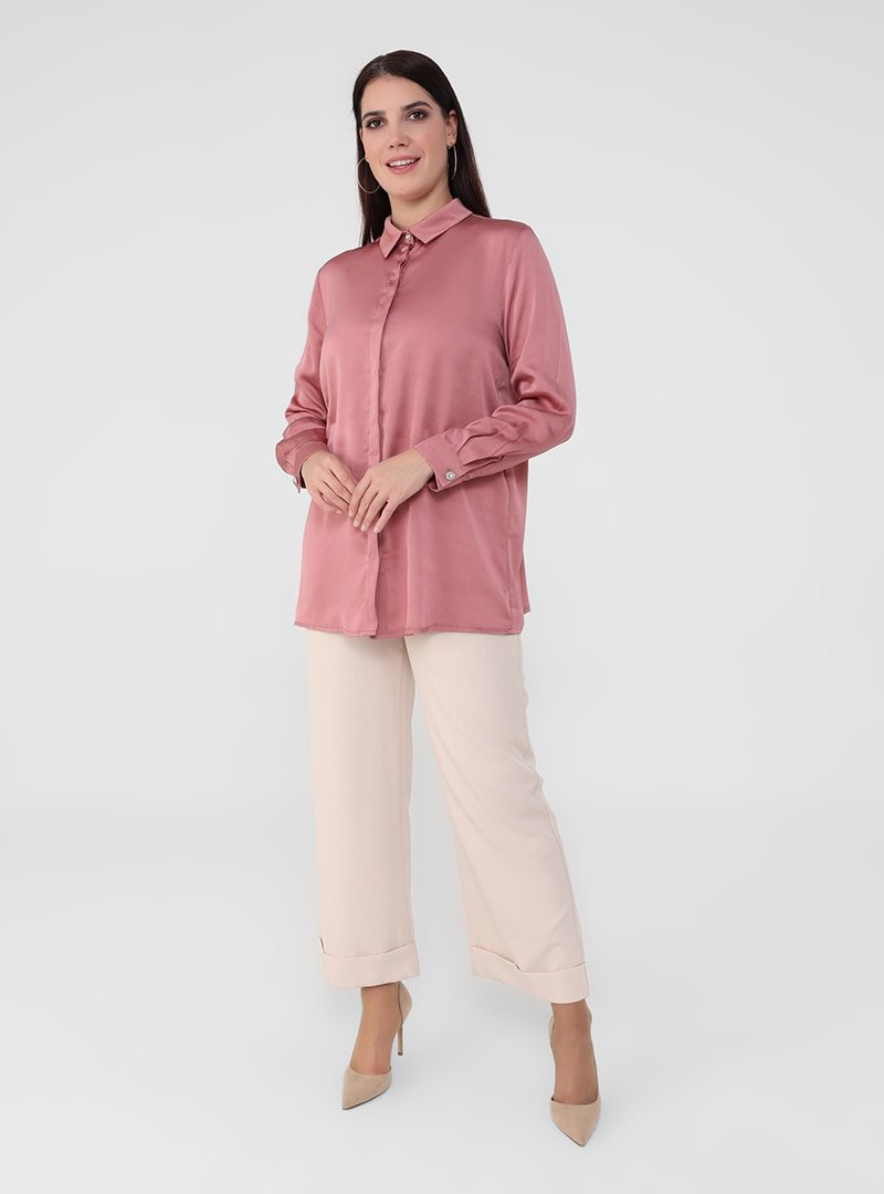 Alia Pudra Büyük Beden Taş Düğme Detaylı Tunik