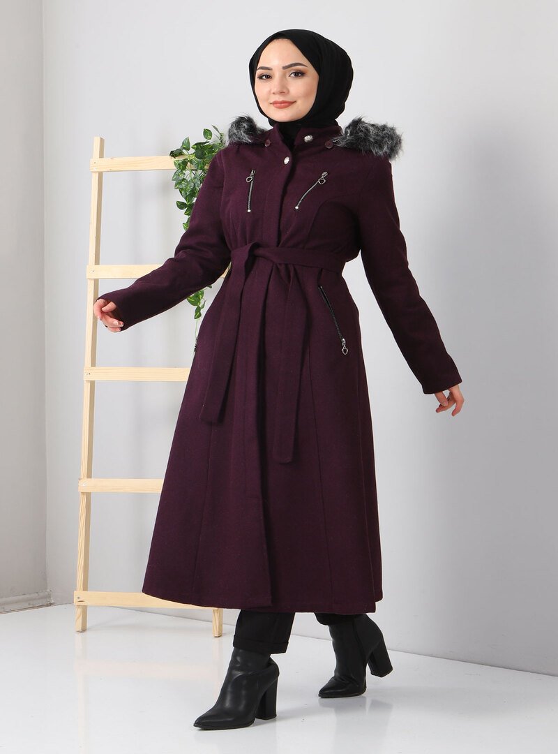 MISSVALLE Mor Fermuar Detaylı Kaşe Kaban