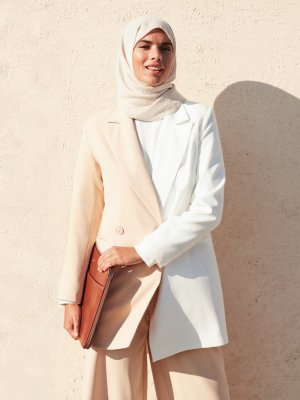 Refka Off White Bej Renk Bloklu Kruvaze Kapama Ceket