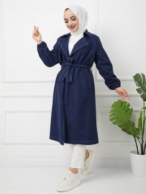Efkeyem Kot Mavi Kol Uçları Lastikli Trençkot
