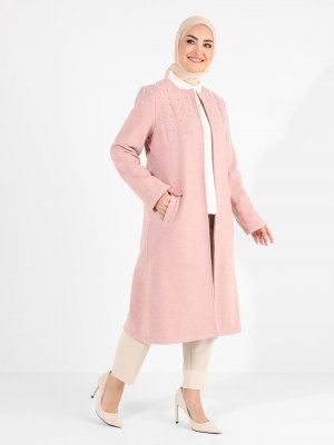 Tavin Pudra İnci Detaylı Kemerli Kaban