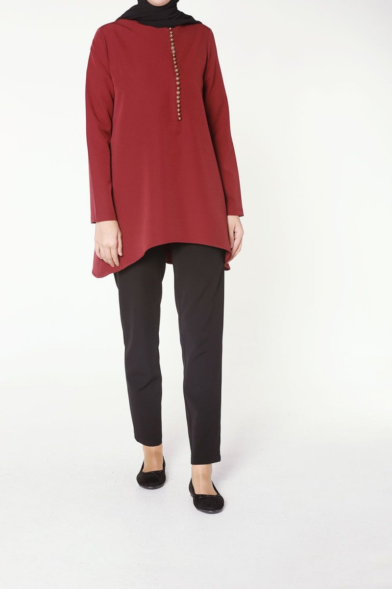 Allday Bordo Sık Düğmeli Bluz