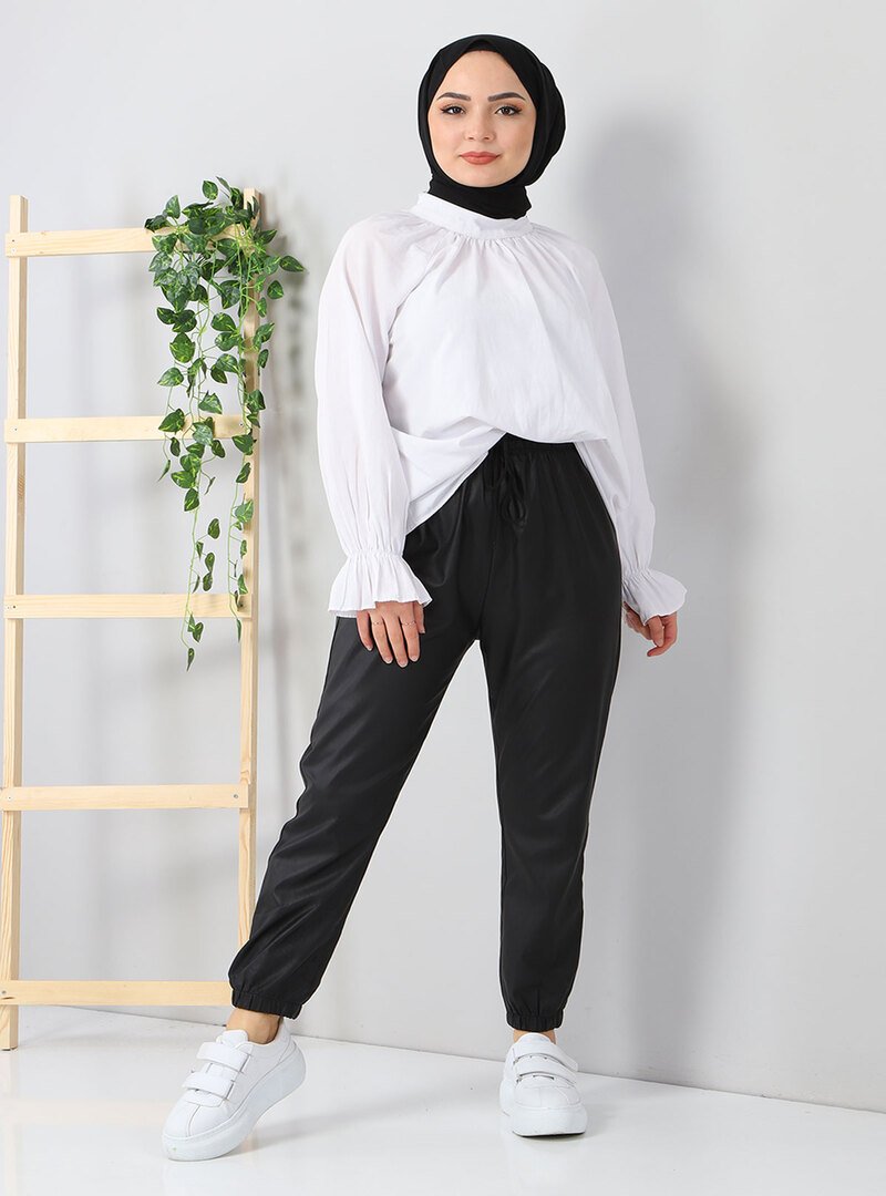 MISSVALLE Siyah Lastikli Deri Pantolon