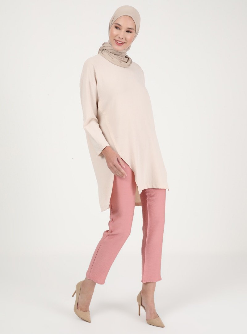 ENSANUR MODA Gül Kurusu Beli Lastikli Pantolon