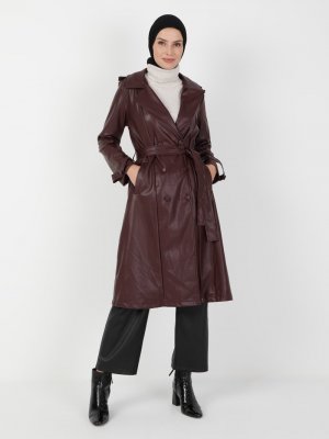 BÜRÜN Bordo Deri Detaylı Kap