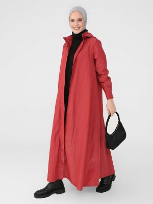 Refka Kırmızı Boydan Fermuarlı Kapüşonlu Kap
