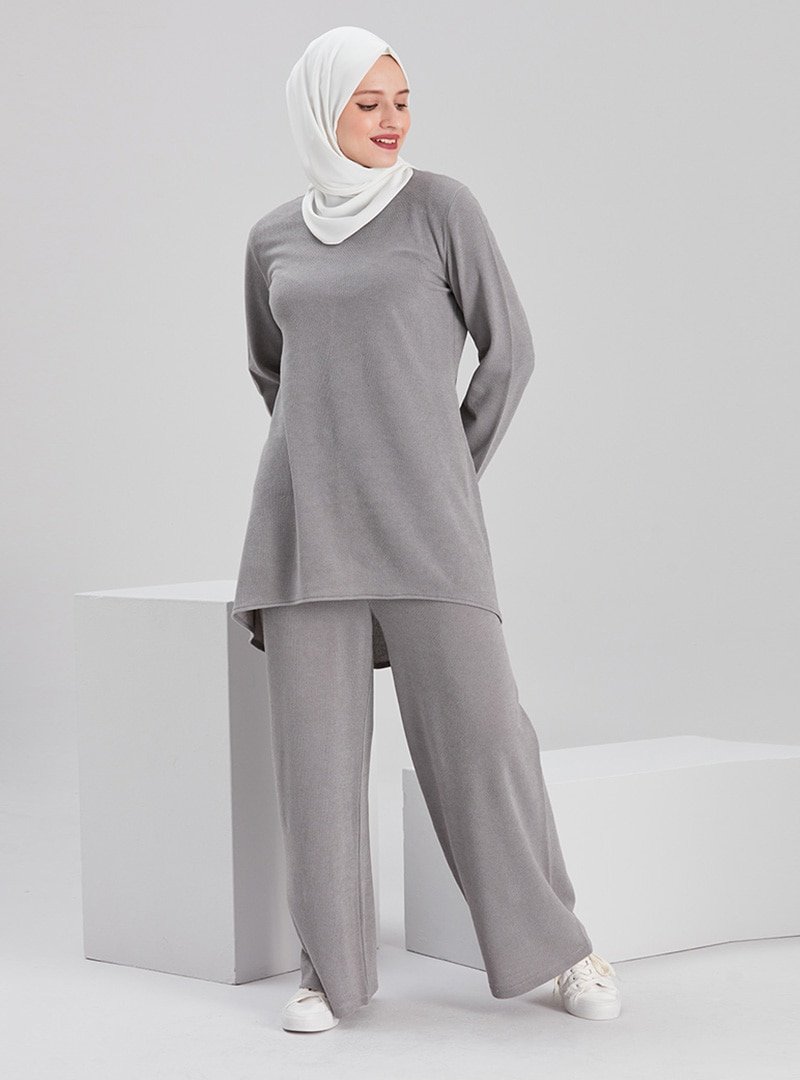 EBRAR Gri Tunik & Pantolon İkili Triko Takım