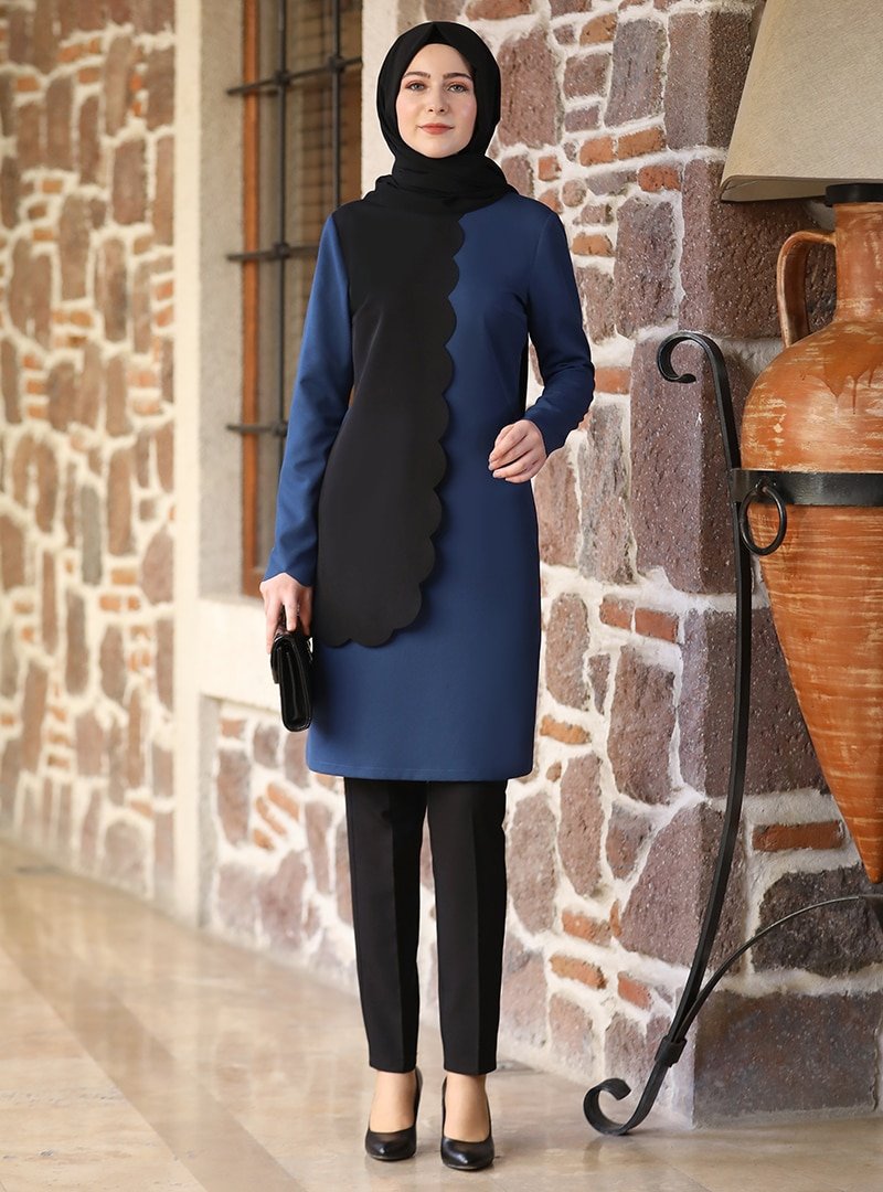 Elben Moda Petrol Meyra Tunik & Pantolon İkili Abiye Takım