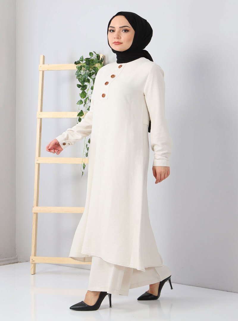 MISSVALLE Ekru Düğmeli Kombin