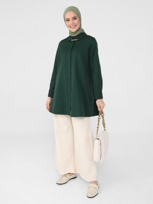 Refka Zümrüt Arkası Piliseli Gizli Düğmeli Tunik