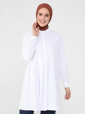 Refka Off White Pile Detaylı Poplin Tunik