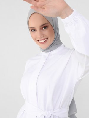 Refka Off White Kemer Detaylı Balon Kol Poplin Tunik