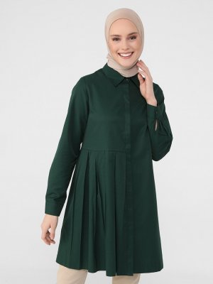 Refka Zümrüt Pile Detaylı Poplin Tunik