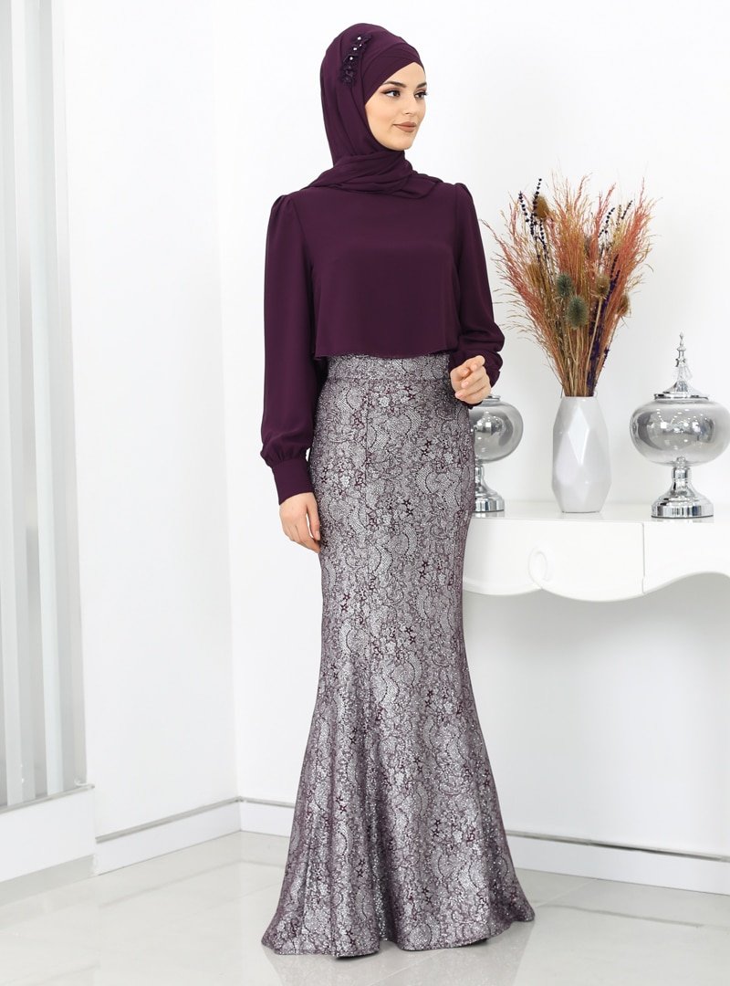 Rana Zenn Mürdüm Lina Bluz & Etek İkili Abiye Elbise Takım