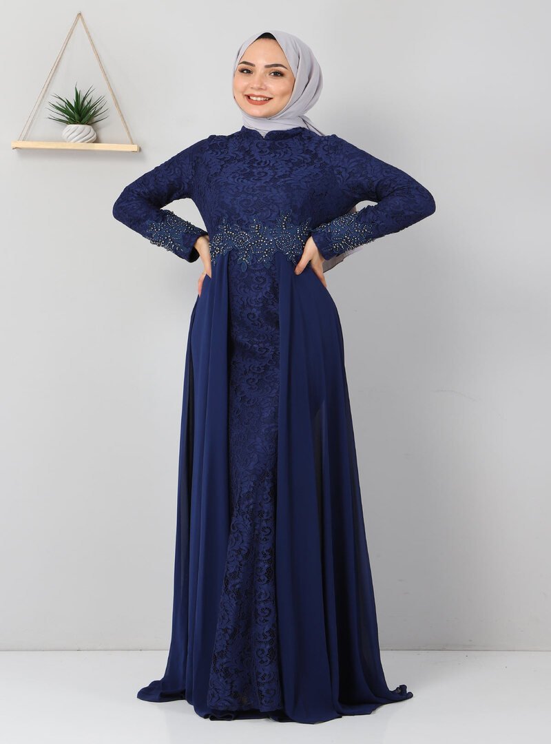 MISSVALLE İndigo Taş Detaylı Balık Abiye Elbise