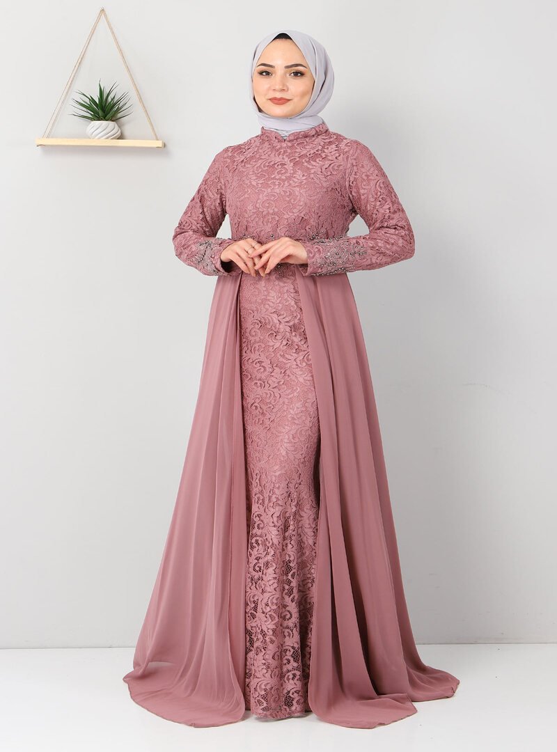 MISSVALLE Gül Kurusu Taş Detaylı Balık Abiye Elbise