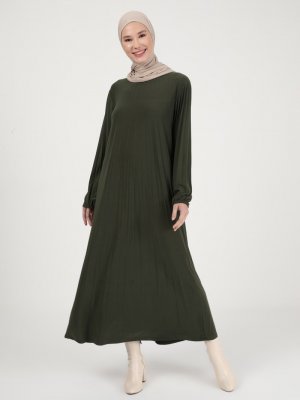 ZENANE Haki Pileli Elbise