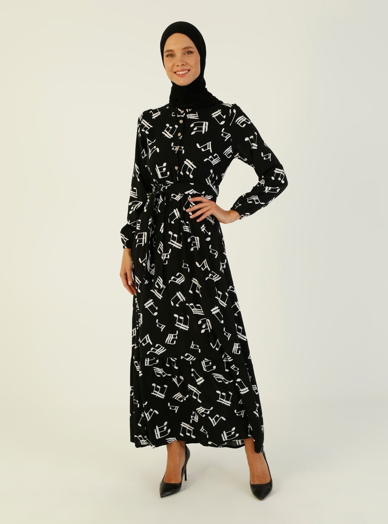 ZENANE Siyah Melodi Desenli Elbise