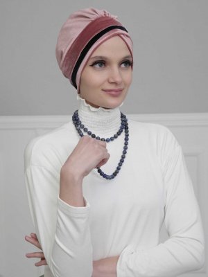 Ayşe Türban Tasarım Gül Kurusu Lacivert İki Renkli Kadife Bone